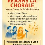 - Rejoins la chorale Notre Dame de la MiséricordeVendredi 3 Octobre de 18h30 à 20h,église Saint-Jacques Tous les vendredis de 18h30 à 20h, église Saint-Jacques Renseignements au 06… Lire la suite : Rejoins la chorale Notre Dame de la Miséricorde
