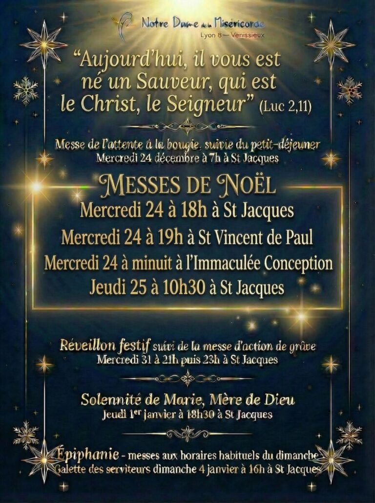 Horaires des messes de Noël et du 31 et 1er janvier