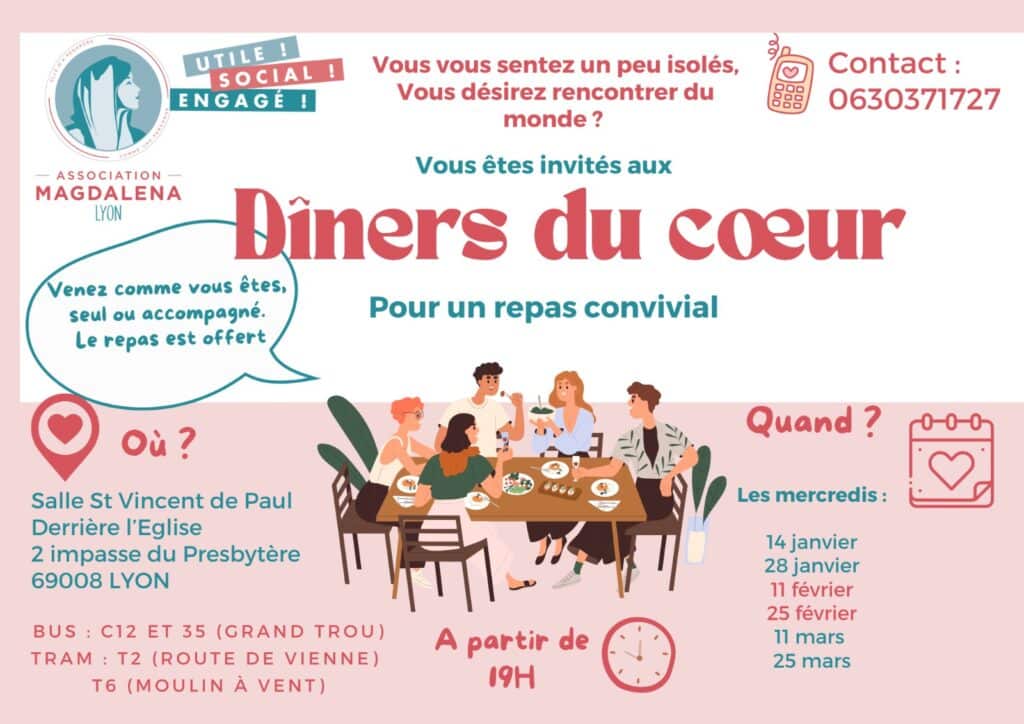 Ces repas sont proposés à toutes personnes souhaitant couper avec la solitude, la routine et cherchant à partager un repas convivial et gratuit avec d’autres personnes du quartier ou d’ailleurs !!