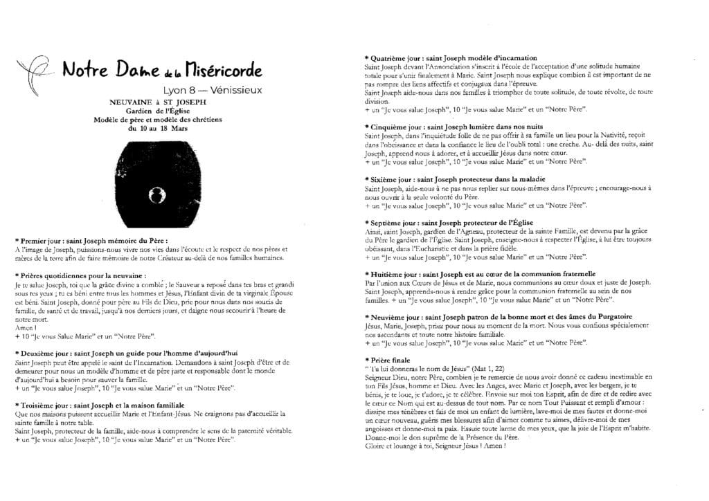 Neuvaine Saint Joseph du 10 au 18 Mars