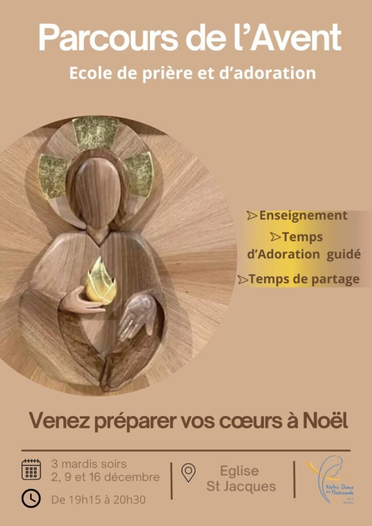Catégories Annonces Parcours de l’Avent Auteur de l’article Par Nathalie Sabatier Date de l’article 1 décembre 2025 Ecole de prière et d’adoration Mardis 2, 9 et 16 Décembre de 19h15 à 20h30 ← Messe de l’Aurore → Evènements paroissiaux du 30/11/2025 au 04/01/2026